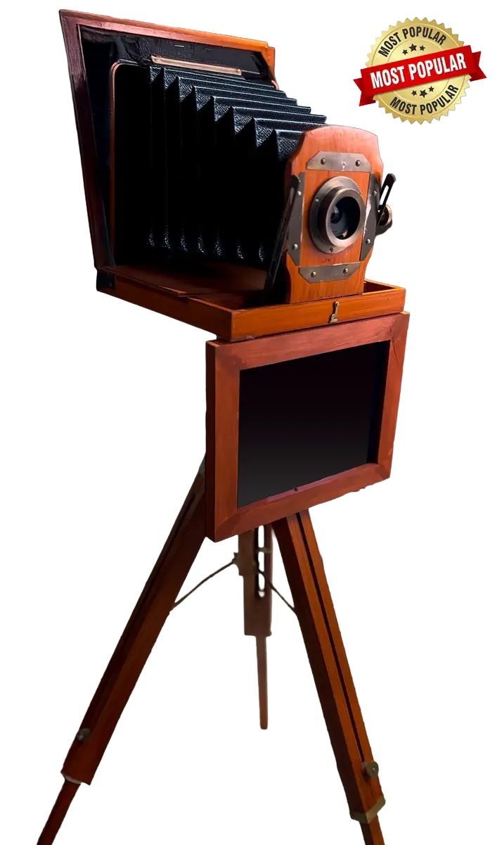 Browse the catalog of photo booth options, from a unique vintage glamour camera, to a classic booth, to a 360° booth.